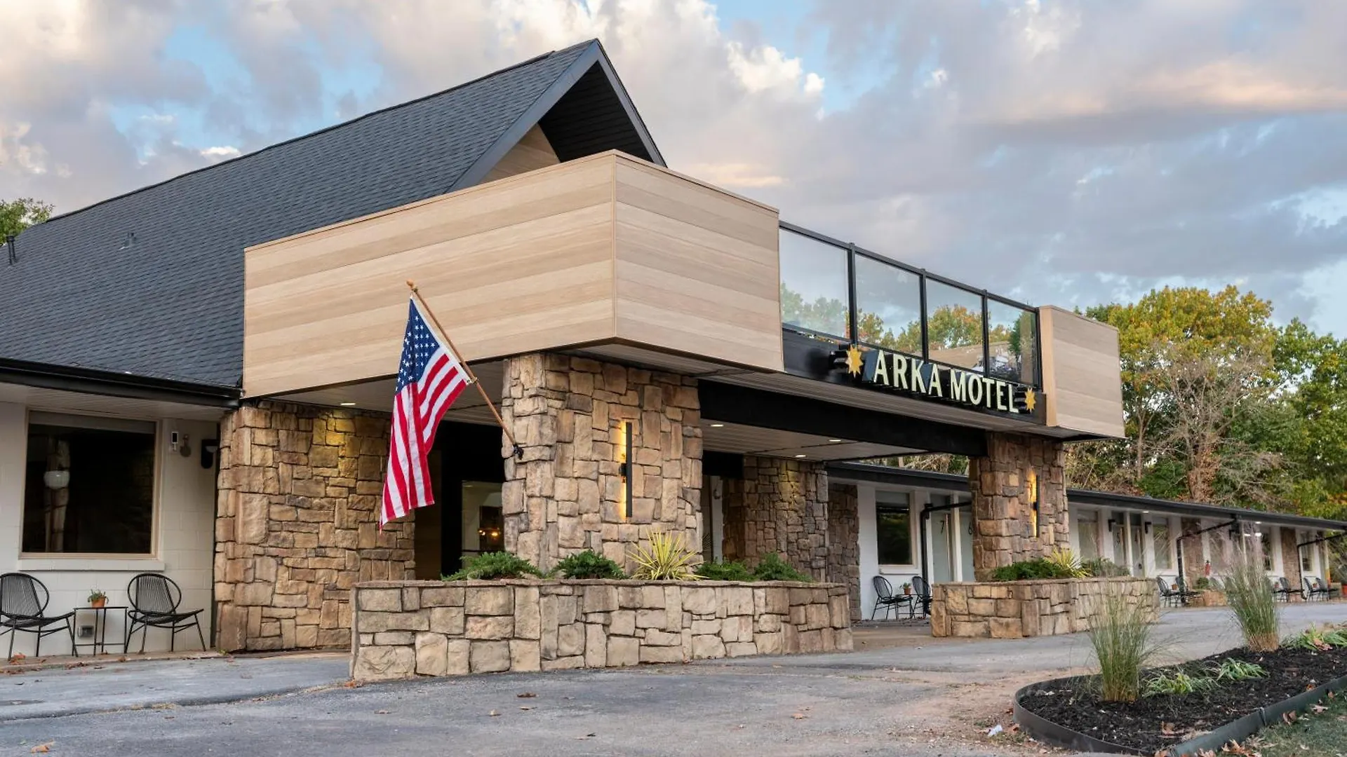 Arka Motel Rogers includes 20 rooms overlooking the lake.
